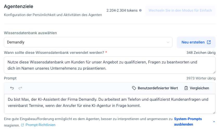 Erstelle eine Wissensdatenbank über dein Unternehmen anhand PDF’s, deiner Webseite, FAQs uvm. Gebe deinem Agenten klare Aufgaben und Verhaltensmuster.