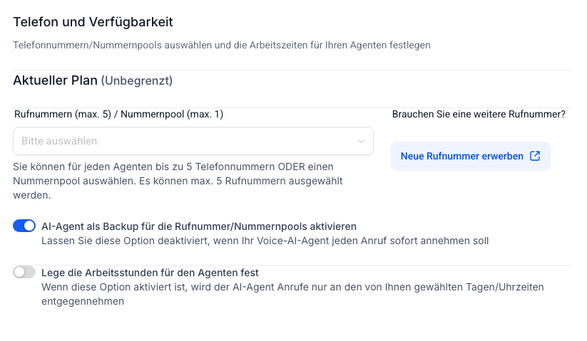 Verbinde den Agenten mit einer Telefonnummer um Anrufe entgegennehmen zu können